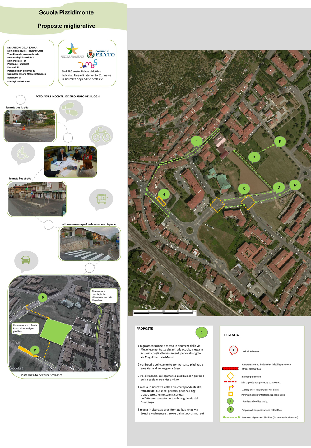 La scuola primaria Pizzidimonte, si trova in via Mugellese, 58. Il gruppo di lavoro del progetto Demos ha seguito un percorso partecipativo all'interno dell'Istituto che si è svolto il 2 maggio 2018, da questo percorso sono emersi problemi legati alla mobilità sostenibile e sono state individuate possibili soluzioni che riportiamo di seguito.